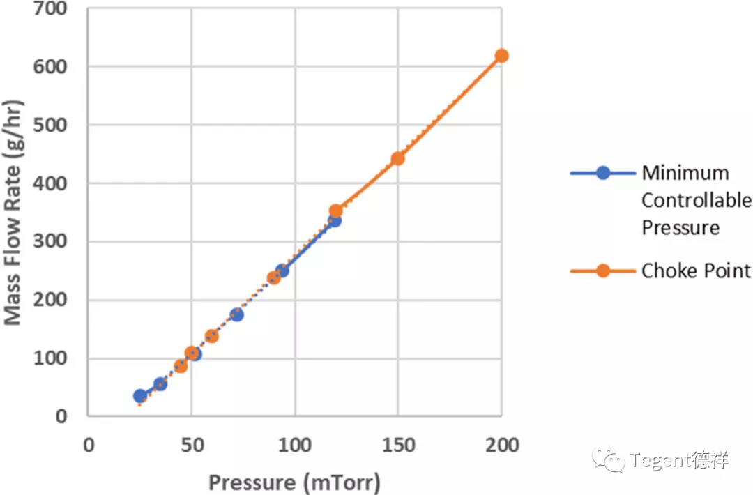 冷凍水盤后,將系統(tǒng)抽真空并使壓力穩(wěn)定,當在壓力設定點建立穩(wěn)定狀態(tài)時,對擱板溫度進行階躍變化,直到觀察到阻塞流。然后記錄所得質量流量,然后建立新的壓力設定點并重復該過程。