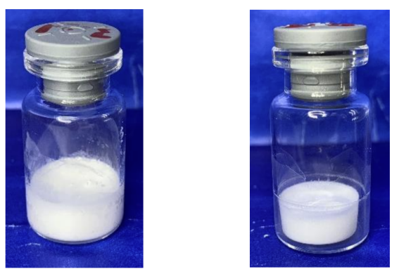 圖1:定性分析結(jié)果合格的凍干餅(左為甘露醇,右為葡聚糖)