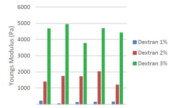 圖4:不同濃度的甘露醇(左)和葡聚糖(右)得到的平均楊氏模量結(jié)果