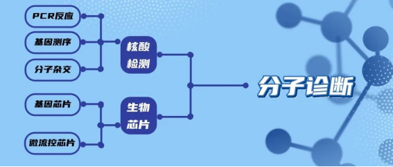 分子診斷大致可分為PCR技術(shù)、基因測(cè)序、熒光原位雜交和基因芯片等。