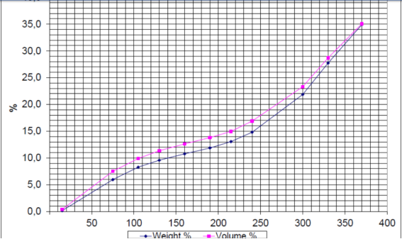 圖2:原油實(shí)沸點(diǎn)蒸餾曲線