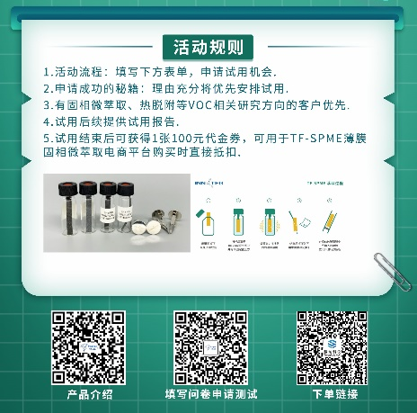 試用名額:10個黃金(VIP)試用官可獲得1盒(4片)TF-SPME薄膜深度體驗;