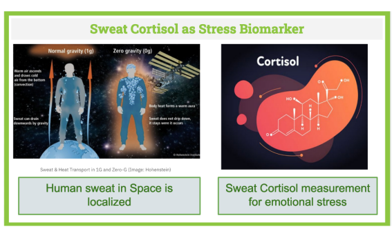 對于近地軌道以外的太空任務(wù),環(huán)境和生理變化更有可能導(dǎo)致宇航員感到孤立、睡眠困難等從而產(chǎn)生心理健康問題。目前的“空間衛(wèi)生”(鍛煉、睡眠、飲食和營養(yǎng))可能不夠。幸運的是,我們有很多現(xiàn)成的技術(shù),如虛擬現(xiàn)實技術(shù)和認知訓(xùn)練,以及在無法進行心理咨詢時用于長期任務(wù)的智能可穿戴設(shè)備,我們使用人工汗液來測試汗液皮質(zhì)醇生物傳感器原型的可靠性和敏感性。我們的目標是150 ng/ml的皮質(zhì)醇標準。我們使用了一種十分貼近人類汗液的汗液產(chǎn)品,該溶液由Pickering Labs提供。