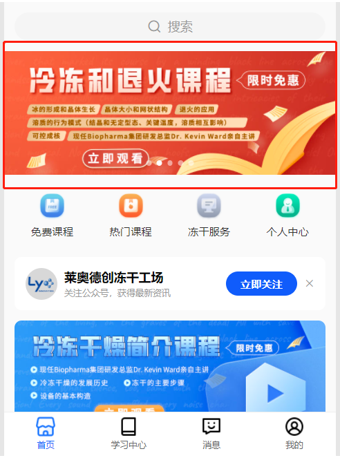 關(guān)注“萊奧德創(chuàng)凍干工場(chǎng)”官方公眾號(hào),獲取凍干講堂線上培訓(xùn)課程。