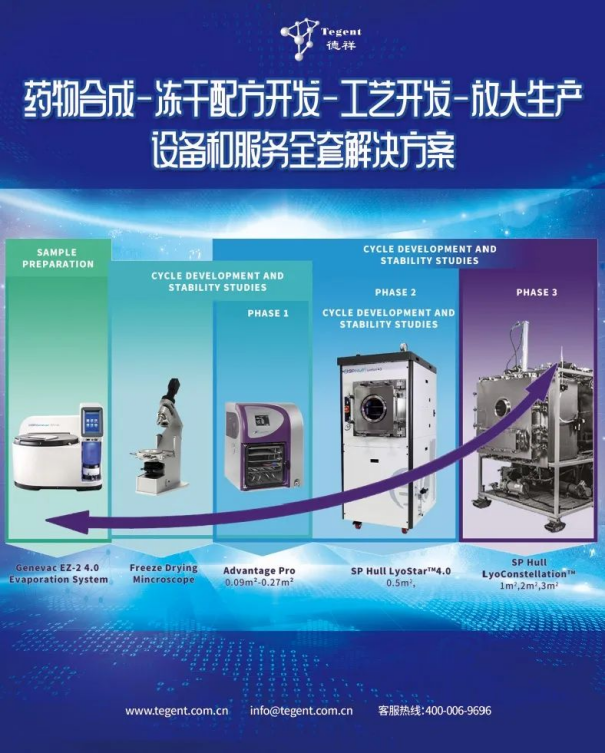 該方案結(jié)合了旗下SP、Genevac、Biopharma多個高端科研品牌的“科技結(jié)晶”,Genevac EZ-2 4.0真空離心濃縮儀、Biopharma Lyostar5凍干顯微鏡等,兼顧了藥物合成、凍干配方開發(fā)、工藝開發(fā)、放大生產(chǎn)等多個藥物研發(fā)階段。