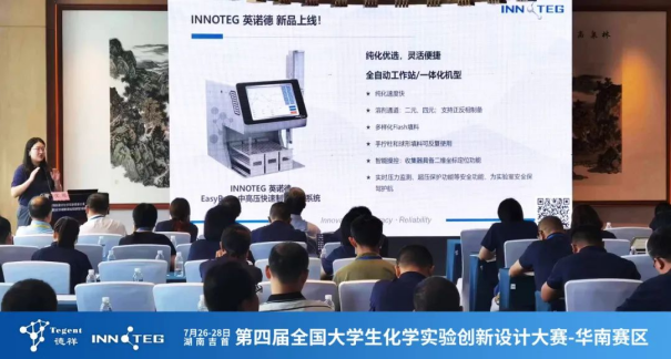 除此之外,德祥科技旗下英諾德資深產(chǎn)品經(jīng)理沈瑤發(fā)表了以《創(chuàng)新科技助力化學研究高效、綠色發(fā)展》為主題的演講,為到場的高校師生介紹INNOTEG英諾德產(chǎn)品是如何賦能化學創(chuàng)新研究。