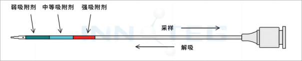 新型的動(dòng)態(tài)針捕集裝置(Needle Trap),把吸附劑填充在針尖內(nèi),可裝填多達(dá)三種不同商用固體填料,是一種新型的無(wú)溶劑微萃取技術(shù),集采樣、萃取、濃縮、進(jìn)樣于一體,適于痕量揮發(fā)性及半揮發(fā)性有機(jī)物分析。