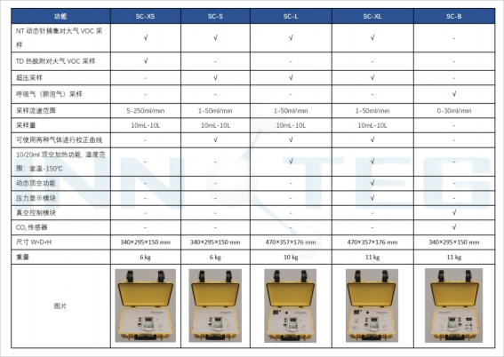 ● 多種型號可選,SC-XS和SC-S型號用于常規(guī)采集;SC-L型號用于常規(guī)采樣、靜態(tài)頂空采樣;SC-XL型號用于常規(guī)采樣、靜態(tài)/動態(tài)頂空采樣、外接氣源壓力控制采樣;SC-B型號專門用于呼吸肺泡氣采樣。
