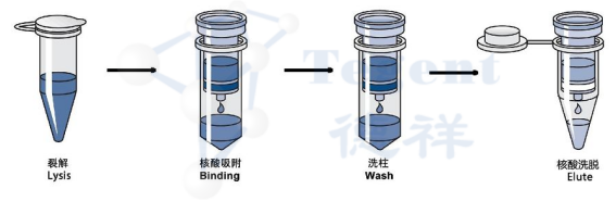 利用高鹽低PH結(jié)合核酸,低鹽高PH值洗脫,來分離純化核酸。離心柱純化也是試劑盒提取中廣泛的使用方法。