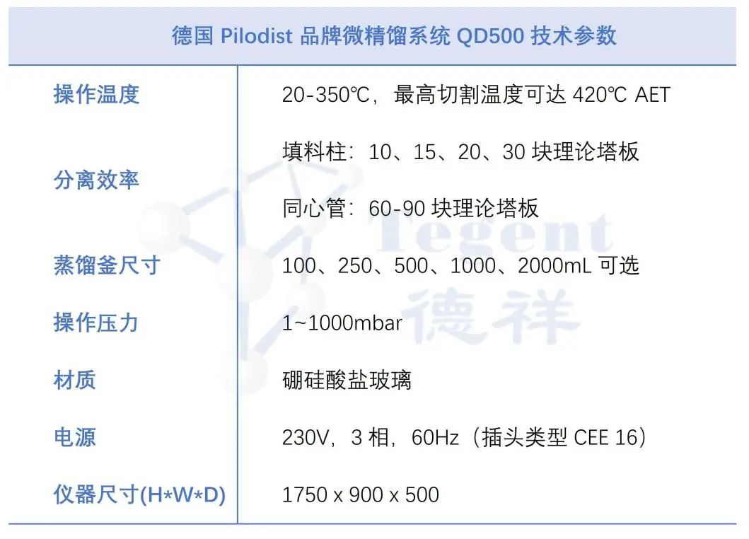 設(shè)備建議:Pilodist QD500微精餾系統(tǒng)