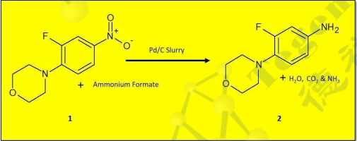 抗生素利奈唑胺是一種常用的藥物,用于針對(duì)致病的革蘭氏陽性菌,如 VRE 和 MRSA,1 并被認(rèn)為是萬 古霉素的可能替代品。2 在藥物合成的一個(gè)常見途徑中,4-(2-氟-4-硝基苯基)嗎啉,1 被氫化為 3-氟-4- (4-嗎啉基)苯胺,2. 3