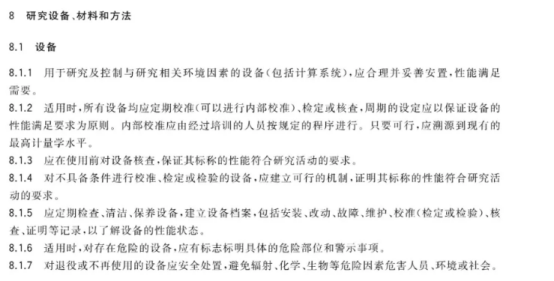 其中對于研究實驗室的設(shè)備明確了具體的要求。
