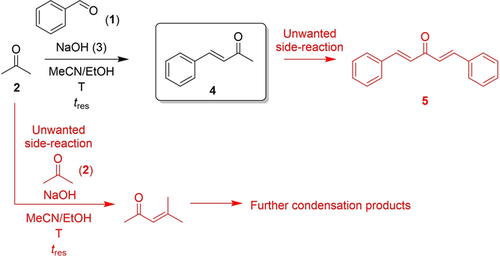 案例研究反應(yīng)是苯甲醛(1)和丙酮(2)在反應(yīng)器溫度T下生成亞芐基丙酮(4)的案例研究。