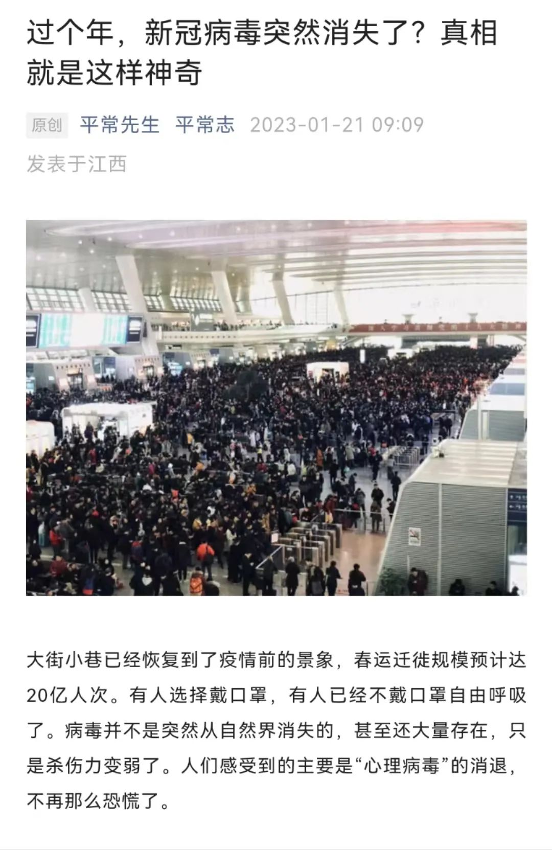 圖來(lái)源:平常志公眾號(hào)推文《過(guò)個(gè)年,新冠病毒突然消失了?真相就是這樣神奇》